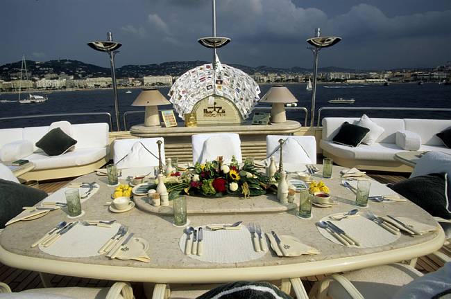 هذه صور للأمير الوليد بن طلال مع عائلته على متن يخته وهو أكبر يخت في العالم . |